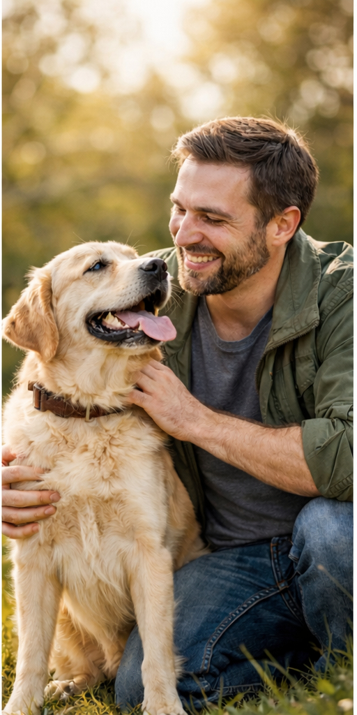 David B. mit seiner 2-jährigen Hündin Ava. Ava ist im Mai 2025 bei der Familie eingezogen und verschönert seitdem dem MS-Erkrankten David und seiner Ehefrau den Tag.Ava wird gemeinsam mit der Trainerin Monika Kloster von Tierisch Trainiert zum Mobilitätsassistenzhund ausgebildet. -